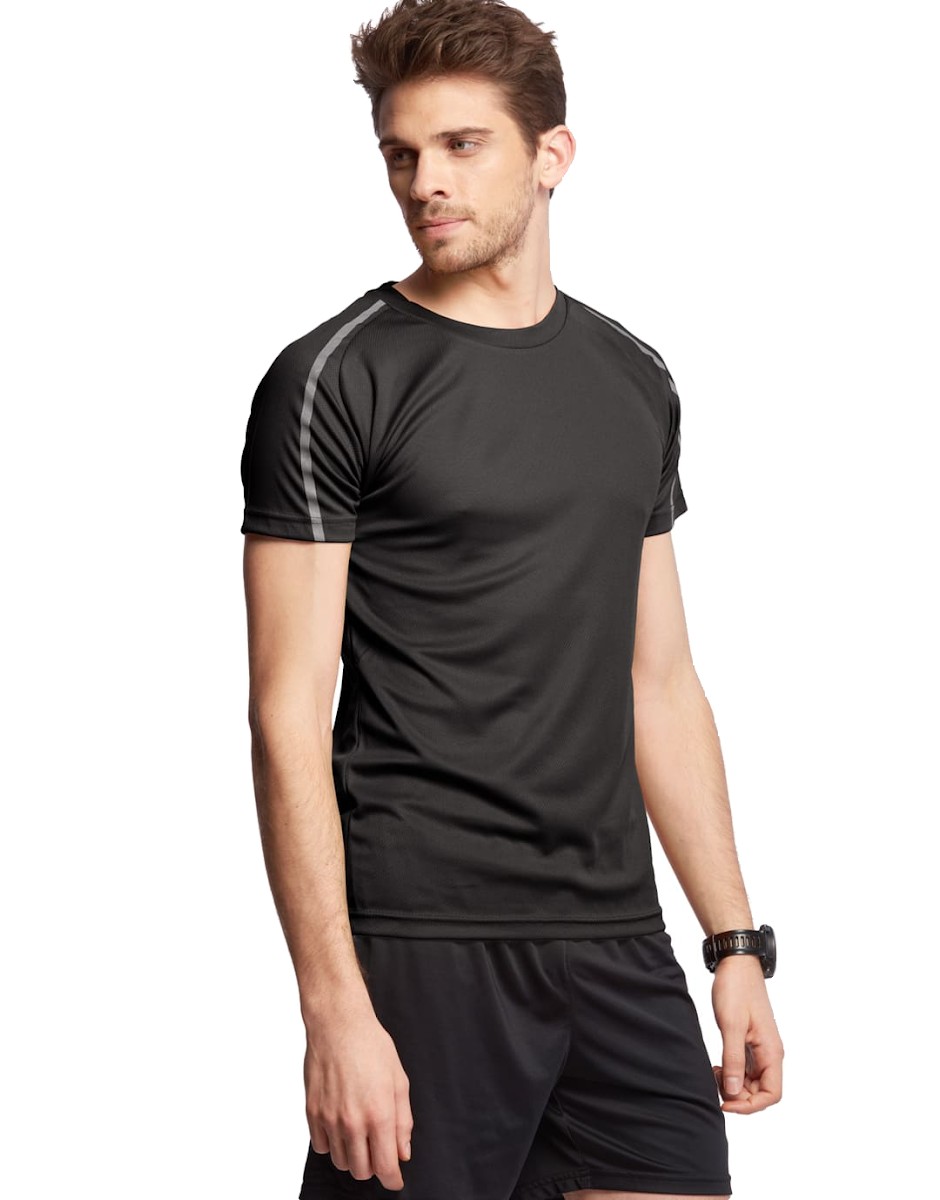 T-Shirt Technique Homme 140 g/m² 100 % Polyester Technologie Active Fit Systèm. Manches courtes raglan avec bandes réfléchissantes devant et dos. Col rond. Taille ajustée pour la pratique sportive. Disponible sur stock et livré sous 24/48h sans personnalisation, coloris disponibles : Jaune Fluo ,Citron vert, Blanc , Gris ,Orange dans les tailles S, M, L, XL, 2XL