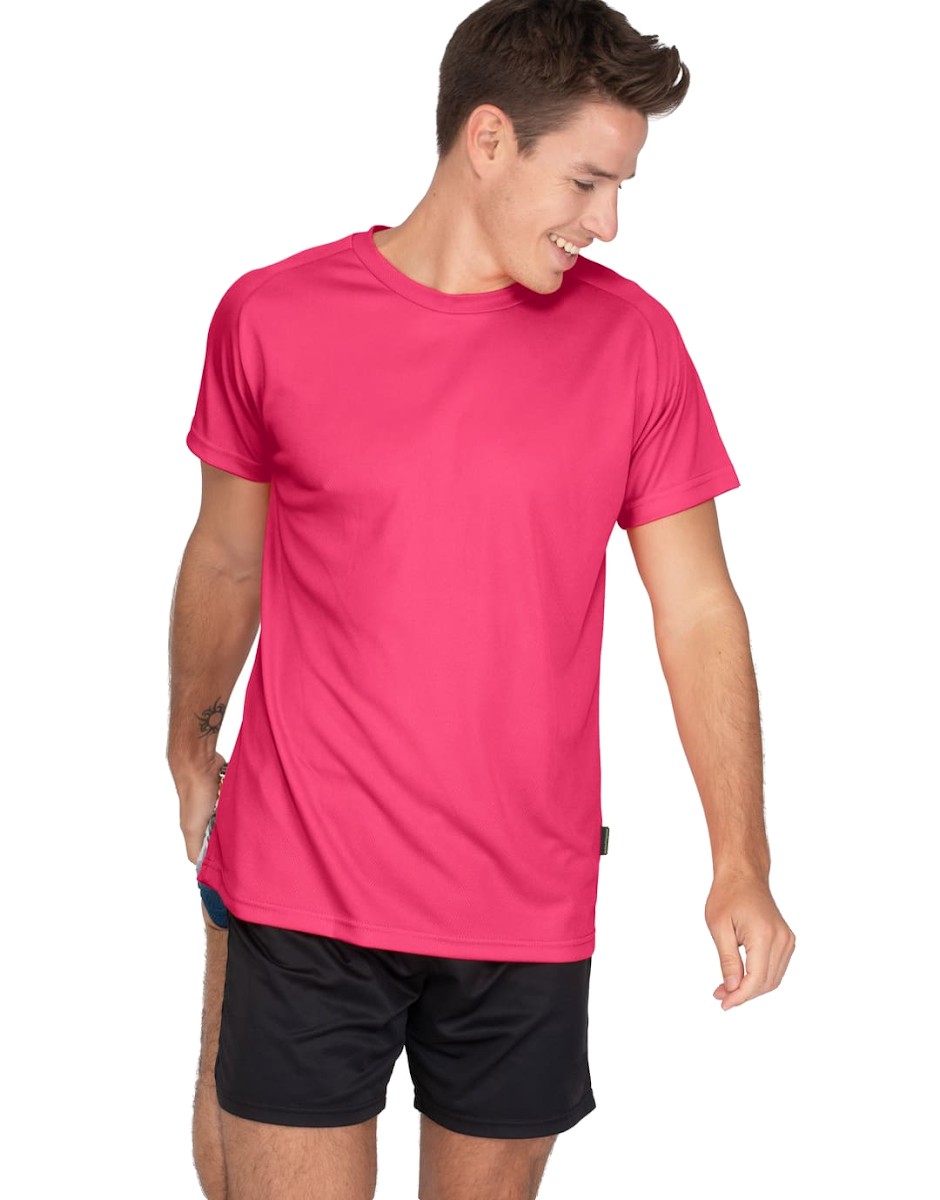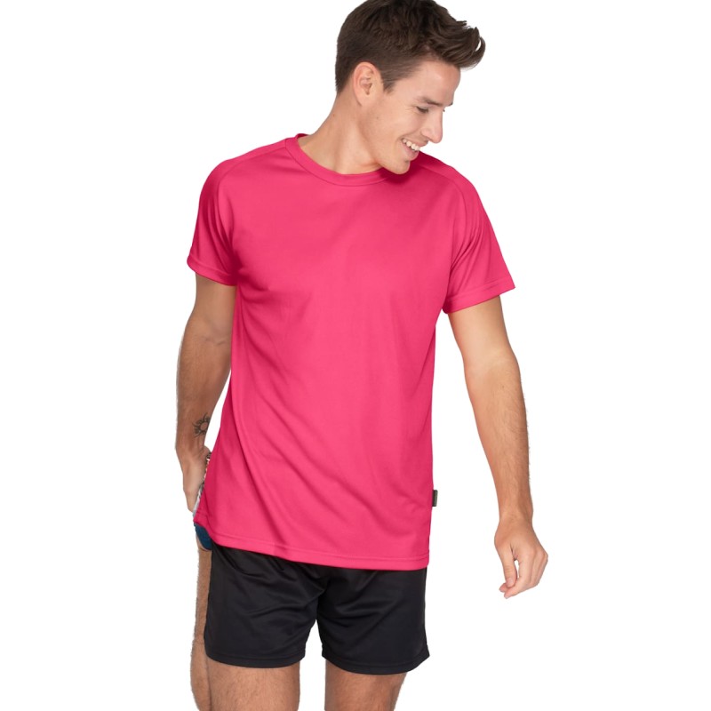 T-Shirt Technique Homme 140 g/m² 100 % Polyester Technologie Active Fit Systèm. Manches courtes raglan. Col rond. Taille ajustée pour la pratique sportive. Disponible sur stock et livré sous 24/48h sans personnalisation, coloris disponibles : Fuschia, Orange, Gris, Royal, Jaune Fluo, Citron Vert, Vert Bouteille, Blanc dans les tailles S, M, L, XL, 2XL