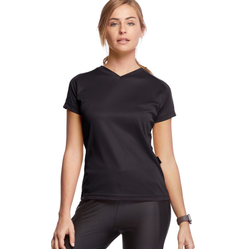 100% Polyester. Technologie Active Fit Systèm : circulation de l'air, évacuation de la transpiration. Manches courtes raglan, Col V, Taille ajustée. Disponible sur stock et livré sous 24/48h sans personnalisation, coloris disponibles : Blanc, Gris, Fuschia, Orange, Citron vert, Rouge,Bleu Azur, Bleu Atoll, Jaune Fluo dans les tailles S, M, L, XL