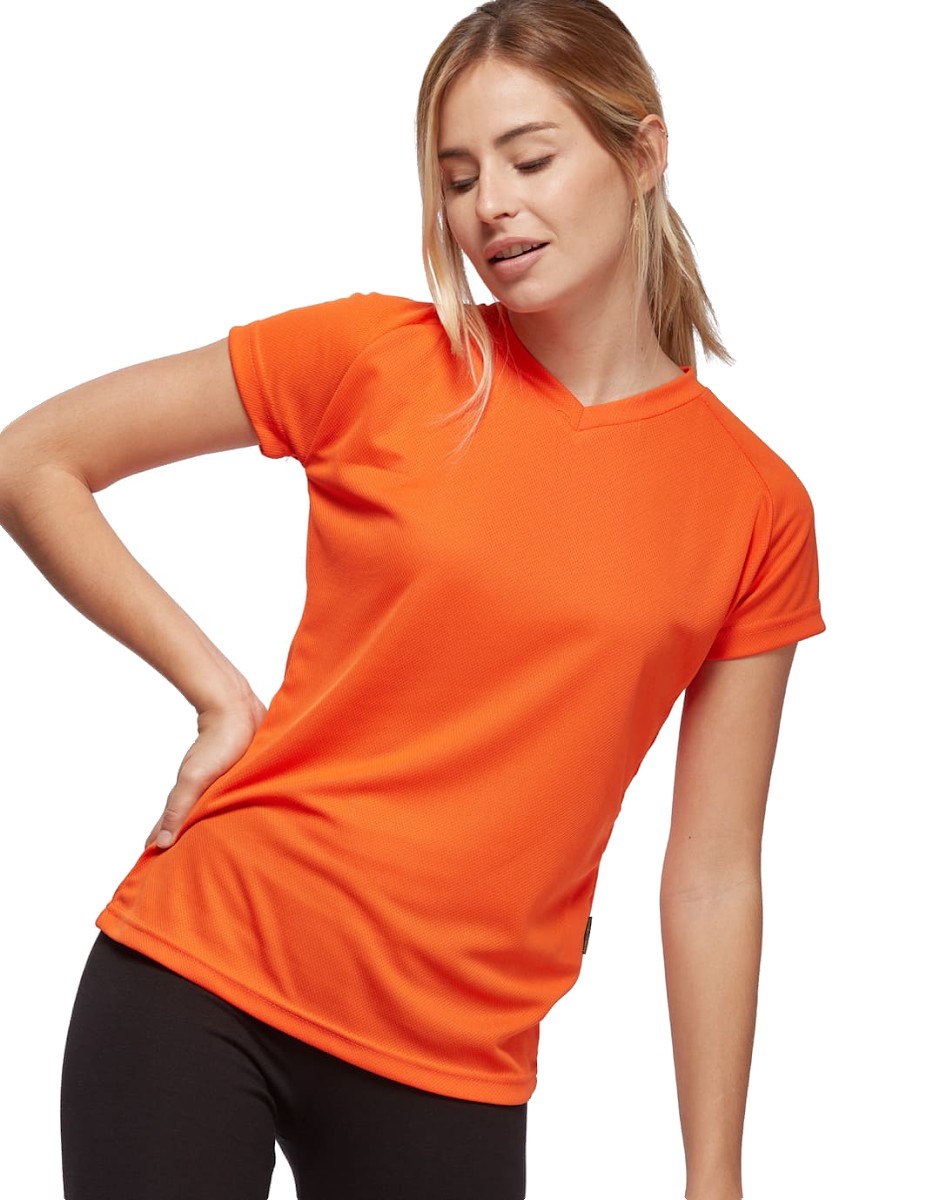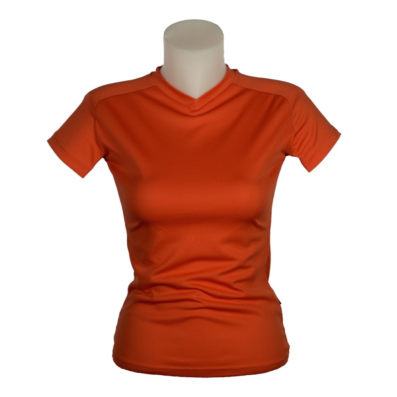 100% Polyester. Technologie Active Fit Systèm : circulation de l'air, évacuation de la transpiration. Manches courtes raglan, Col V, Taille ajustée. Disponible sur stock et livré sous 24/48h sans personnalisation, coloris disponibles : Blanc, Gris, Fuschia, Orange, Citron vert, Rouge,Bleu Azur, Bleu Atoll, Jaune Fluo dans les tailles S, M, L, XL