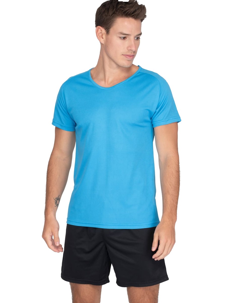 T-Shirt 100% polyester 125g/m². Technologie Active Fit Systèm : circulation de l'air, évacuation de la transpiration. Manches courtes raglan, Col U, Taille ajustée. Disponible sur stock et livré sous 24/48h sans personnalisation, coloris disponibles : Blanc, Océan, Vert, Gris, Jaune, Corail Fluo, Violet dans les tailles S, M, L, XL, 2XL