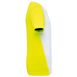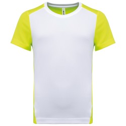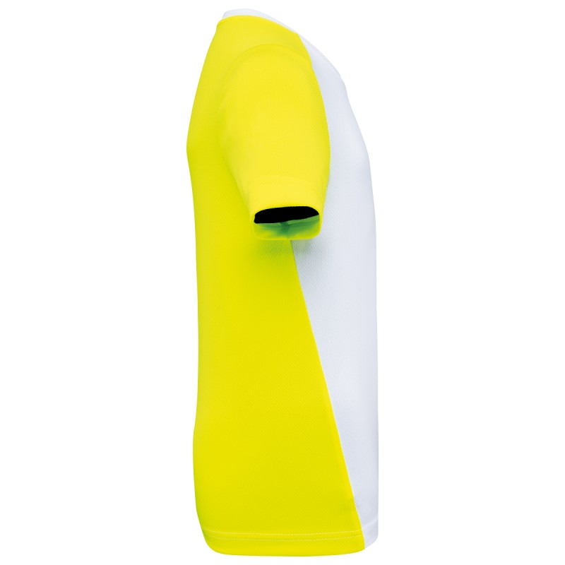 100% polyester birdseye recyclé post consumer. Tissu léger à séchage rapide. Coupe ajustée. Encolure ronde avec bande de propreté. Manches montées. Découpes épaules, manches, dos et partie en biais à l'avant contrastés. Finition double aiguille au bas de manches et de vêtement. Etiquette de marque détachable.