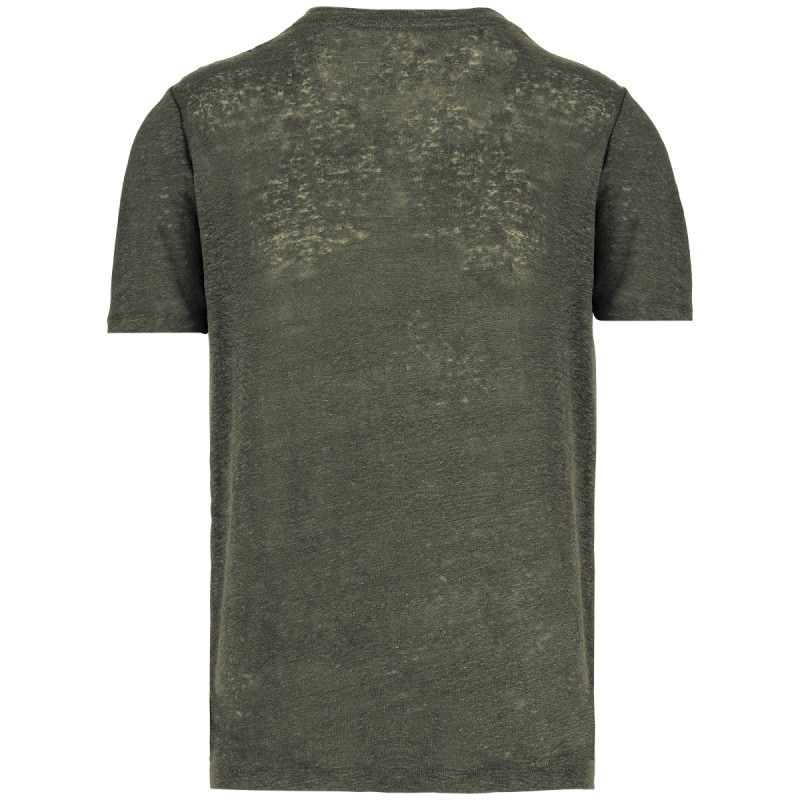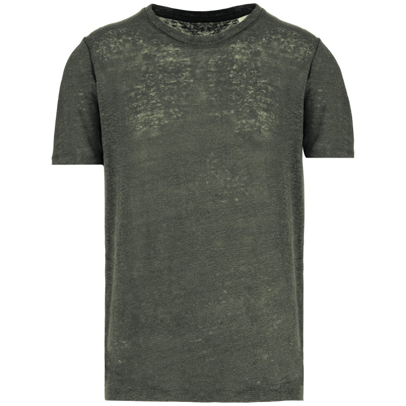 100% lin. Maille. Coupe ajustée. Coutures latérales. Col en matière principale. Bande de propreté intérieure col en matière principale. Ourlet double surpiqûre bas de manches et bas de vêtement.