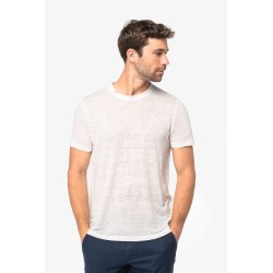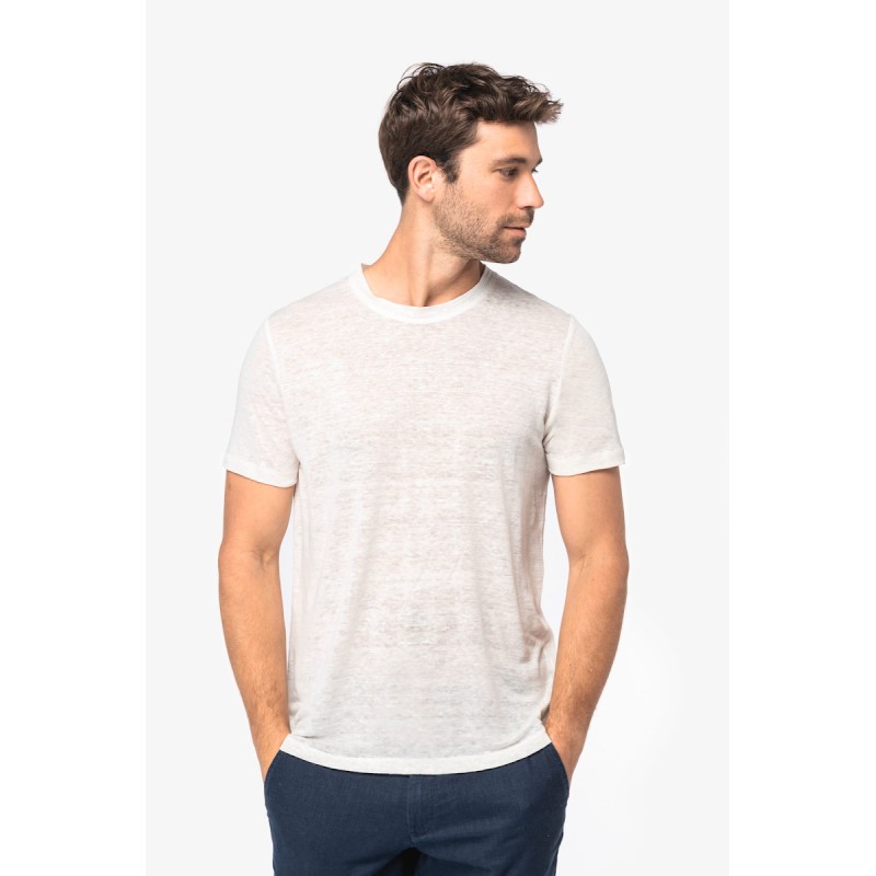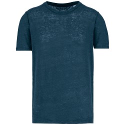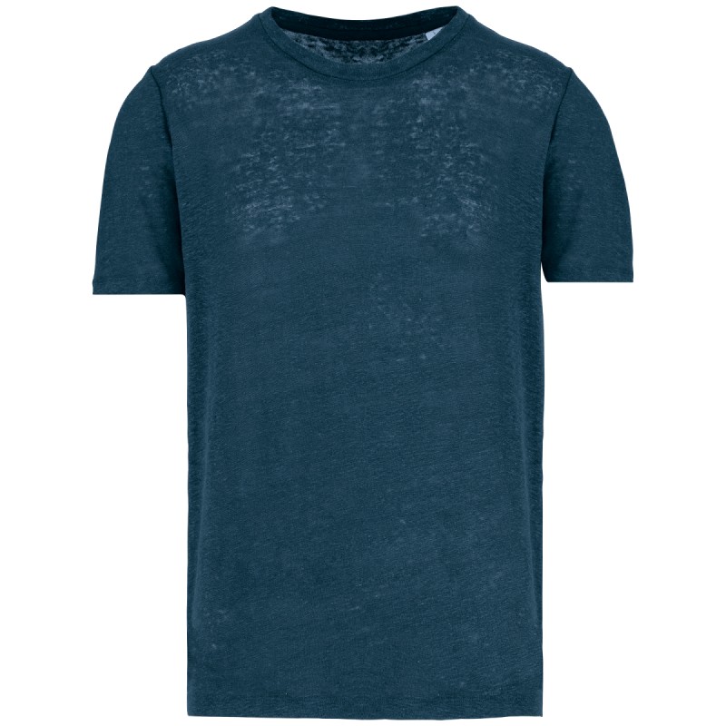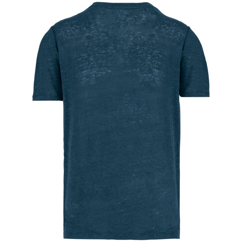 100% lin. Maille. Coupe ajustée. Coutures latérales. Col en matière principale. Bande de propreté intérieure col en matière principale. Ourlet double surpiqûre bas de manches et bas de vêtement.