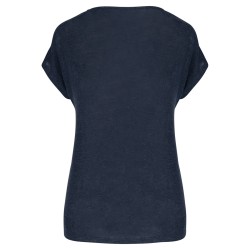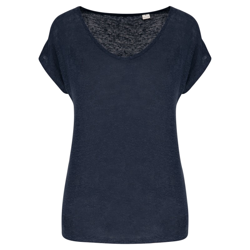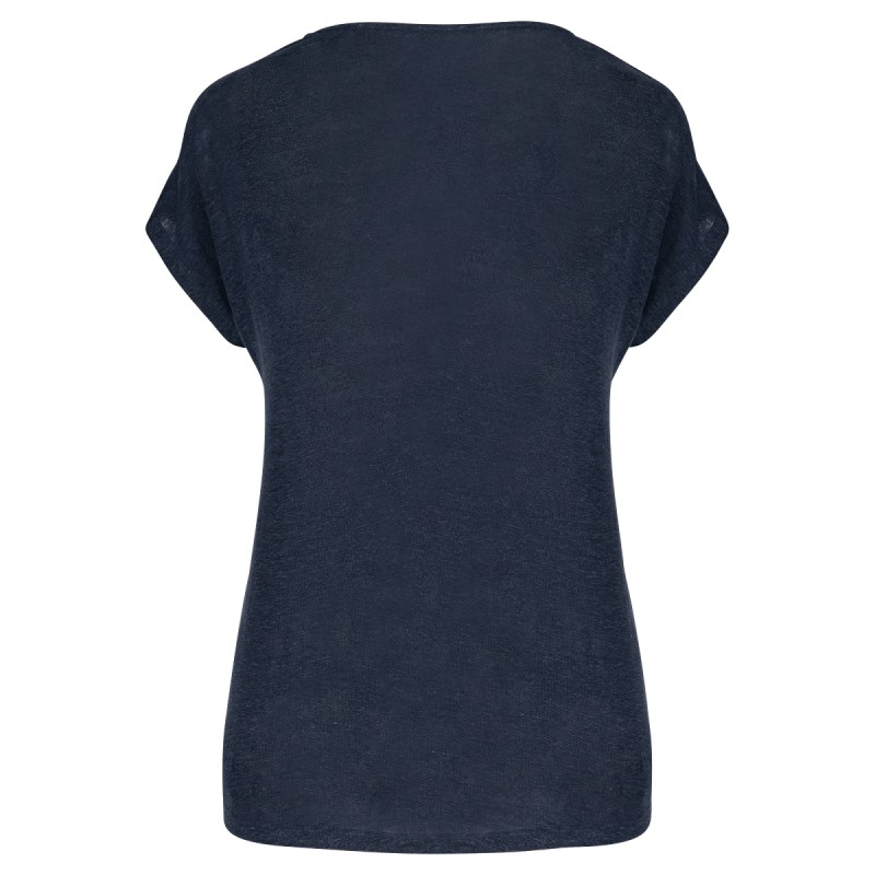 100% lin. Maille. Coupe ajustée. Coutures latérales. Col V en matière principale. Bande de propreté intérieure col en matière principale. Ourlet double surpiqûre bas de manches et bas de vêtement.