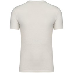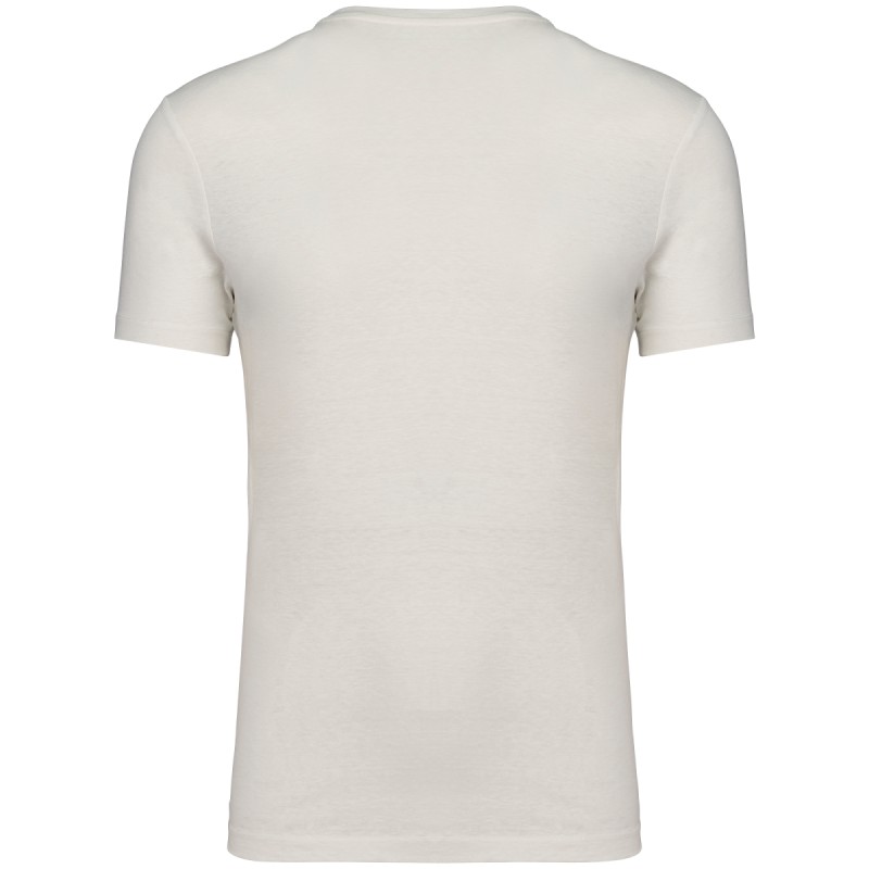 70% coton biologique / 30% lin. Maille. Coton peigné ringspun. Coupe ajustée. Coutures latérales. Lavé aux enzymes. Bord côte col 1 x 1. Bande de propreté intérieure col en matière principale. Ourlet simple surpiqûre bas de manches et bas de vêtement.