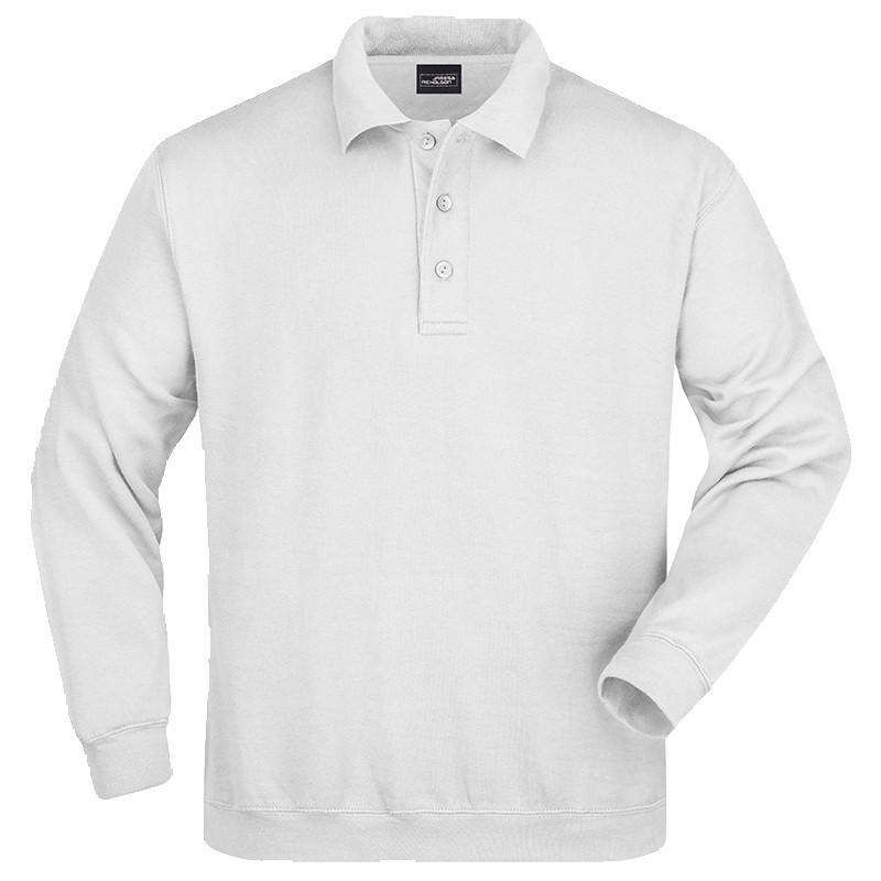 Sweat-Shirt Homme Double couture au col aux épaules / emmanchures et bas de corps Bande de propreté ton sur ton Col / bas des manches et corps en bord côte Sans capuche Col avec patte à 3 boutons 3 Boutons ton sur ton Intérieur molletonné Coupe droite 80% coton 20% polyester 320 gr /m² Lavable à 60°C