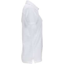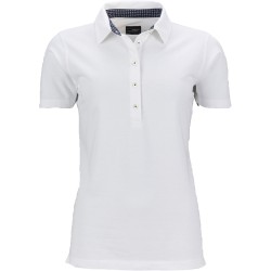 Polo classique Femme Manches courtes Col avec insert imprimé Patte de boutonnage 5 Boutons ton sur ton Maille piquée aspect délavé Coupe ajustée 100% coton peigné ring-spun 190 gr/m²