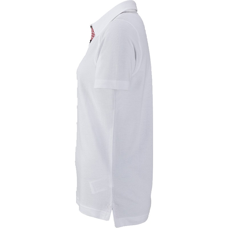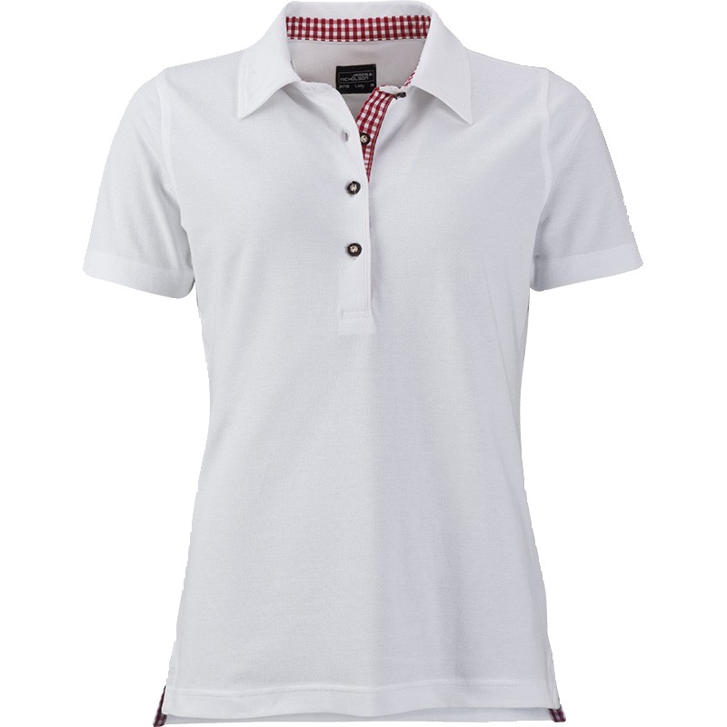 Polo fashion Femme Manches courtes Fentes latérales avec insert vichy Col avec insert Vichy Patte de boutonnage avec insert vichy 4 Boutons imitation corne Maille piquée Coupe cintrée 100% coton peigné ring-spun 195 gr /m²