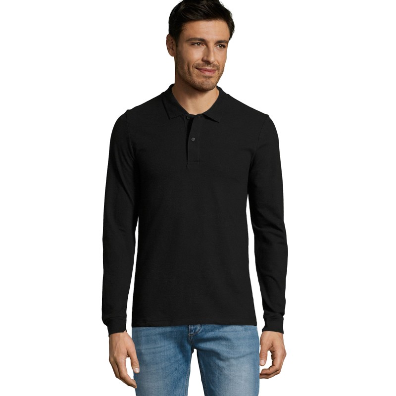 POLO PIQUÉ MANCHES LONGUES HOMMECol et bas de manches en côte 1X1