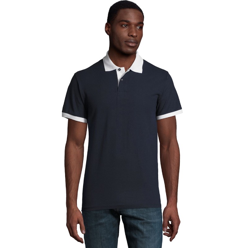 Bouton de rechange sur couture intérieure côtéPolo bicolore et très tendance avec un mélange de couleurs dynamique permettant la mise en avant des logos sociétés.