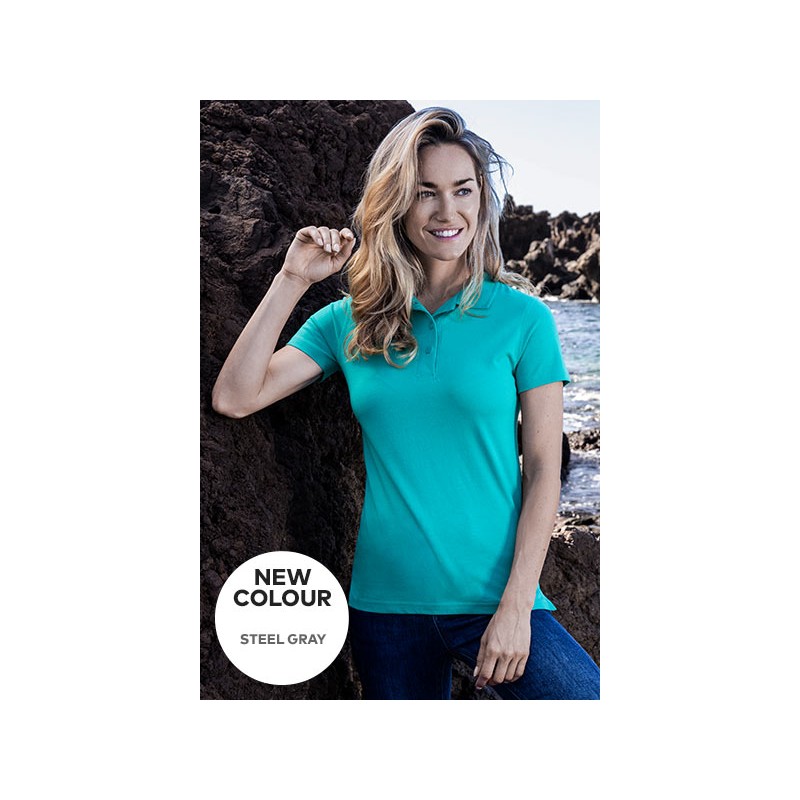 Polo en jersey pour femme, patte de boutonnage de qualité supérieure avec 3 boutons ton sur ton, passants de suspension fixés à l'intérieur au niveau des coutures latérales, étiquette de taille neutre, jersey simple, pré-rétréci, 100 % coton, 180 g/m², S–XXXL. Unité = 5 pièces.