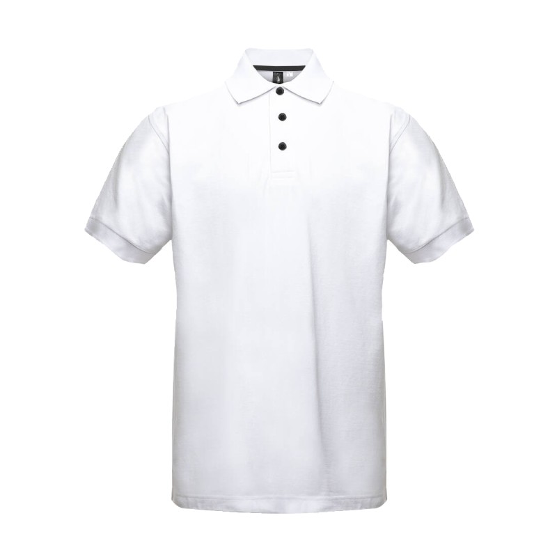 Bande de propreté contrastée au col. Bord côte aux manches et col. Plaquette 3 boutons.