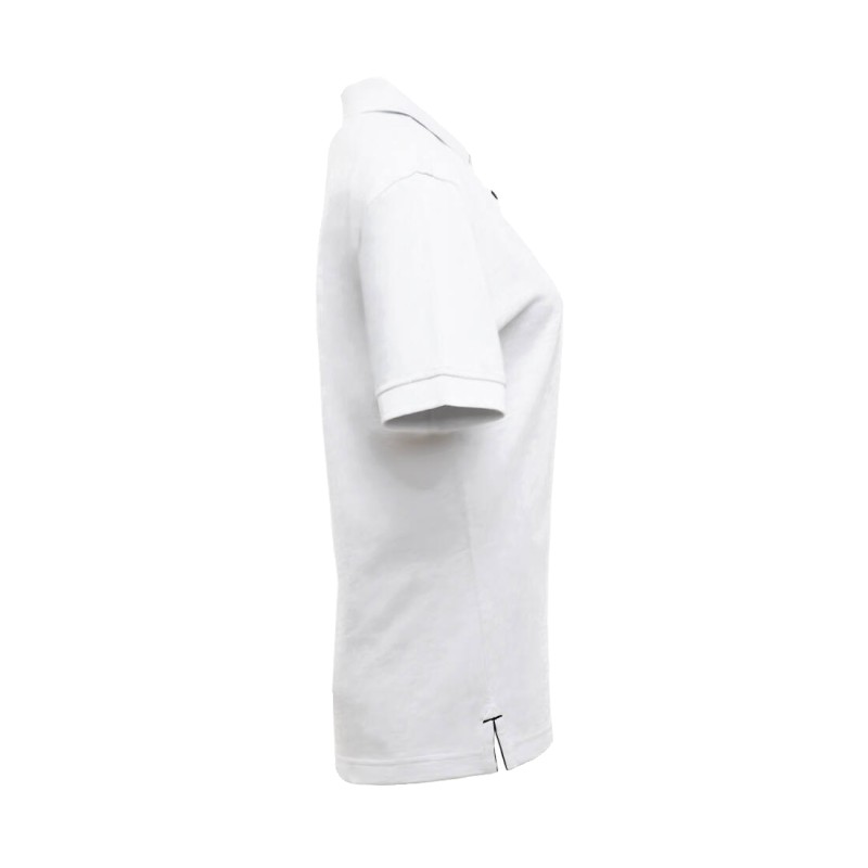 Bande de propreté contrastée au col. Bord côte aux manches et col. Plaquette 4 boutons.