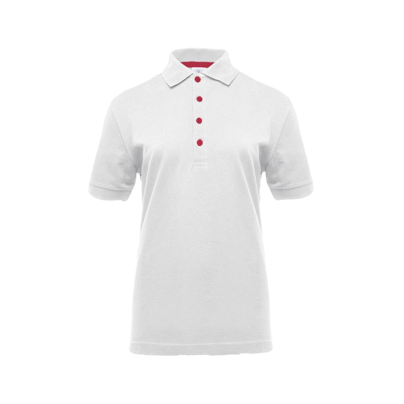 Bande de propreté contrastée au col. Bord côte aux manches et col. Plaquette 4 boutons.