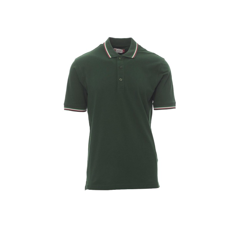 Polo unisexe à manche courte et 3 boutons assortis, col et bordure des manches en bord côtes avec fin profil tricolore en contraste, fentes latérales avec couture de renfort, coutures du col couvertes, ruban de renfort latéral, coutures stretch, renfort profilé à l'intérieur du col.