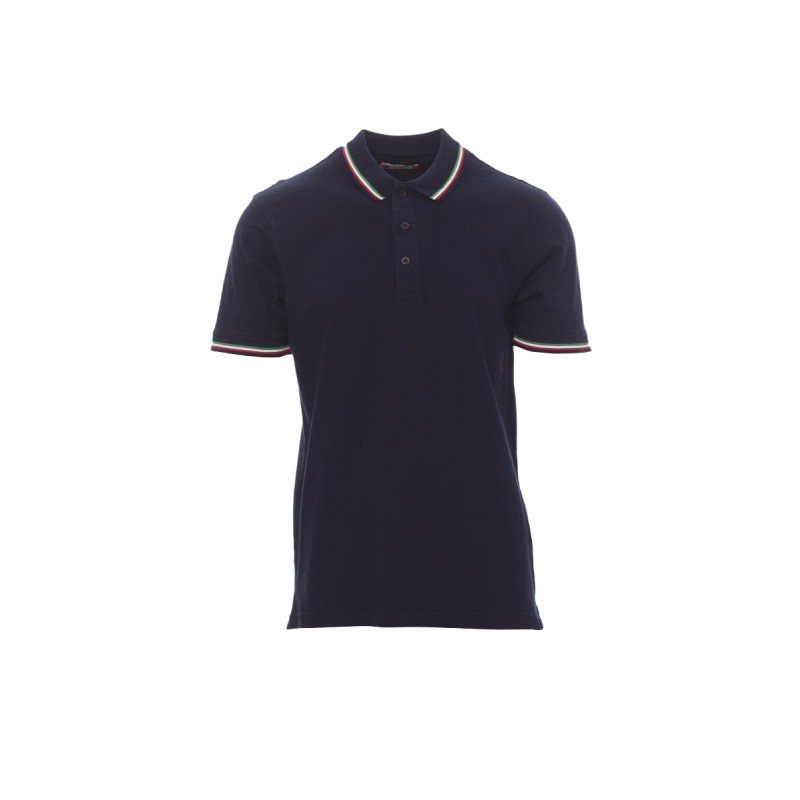 Polo unisexe à manche courte et 3 boutons assortis, col et bordure des manches en bord côtes avec fin profil tricolore en contraste, fentes latérales avec couture de renfort, coutures du col couvertes, ruban de renfort latéral, coutures stretch, renfort profilé à l'intérieur du col.