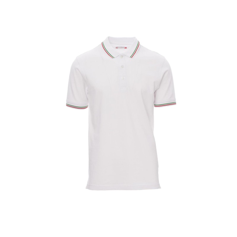 Polo unisexe à manche courte et 3 boutons assortis, col et bordure des manches en bord côtes avec fin profil tricolore en contraste, fentes latérales avec couture de renfort, coutures du col couvertes, ruban de renfort latéral, coutures stretch, renfort profilé à l'intérieur du col.