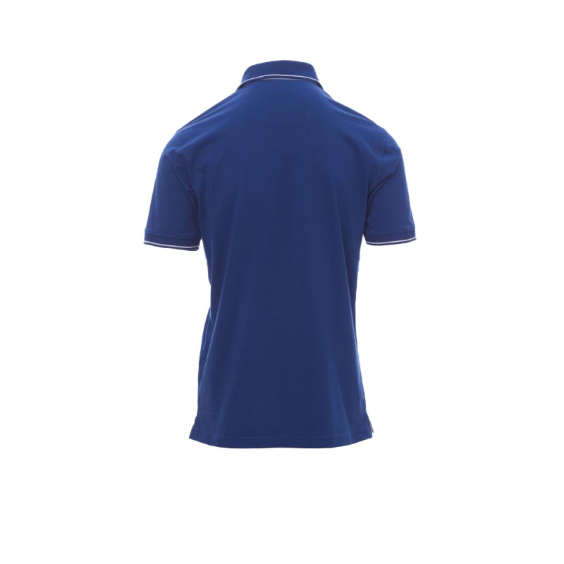 Polo pour homme à manches courtes et 3 boutons blancs, avec intérieur col, patte et fentes latérales en Oxford bleu ciel, col et bordure des manches en bord côtes avec fin profil en contraste, œillets sous les bras, fentes latérales avec couture de renfort, ruban de renfort latéral, coutures stretch, renfort profilé sur encolure arrière