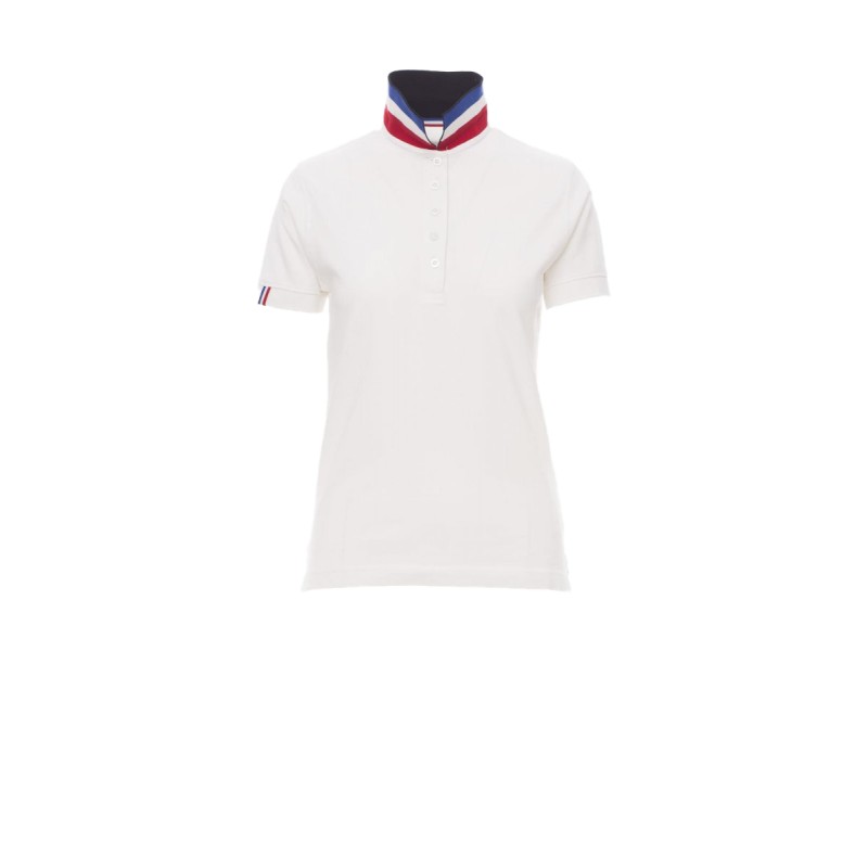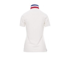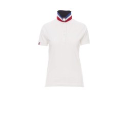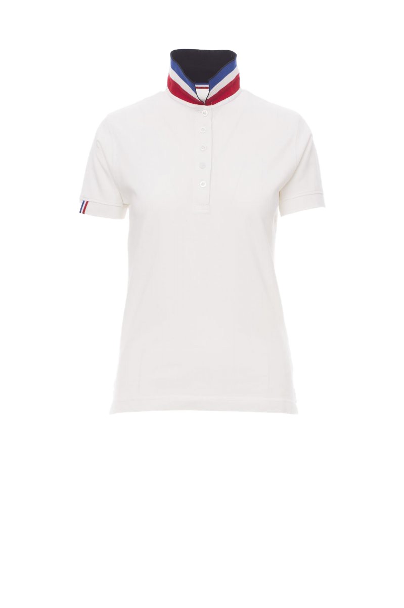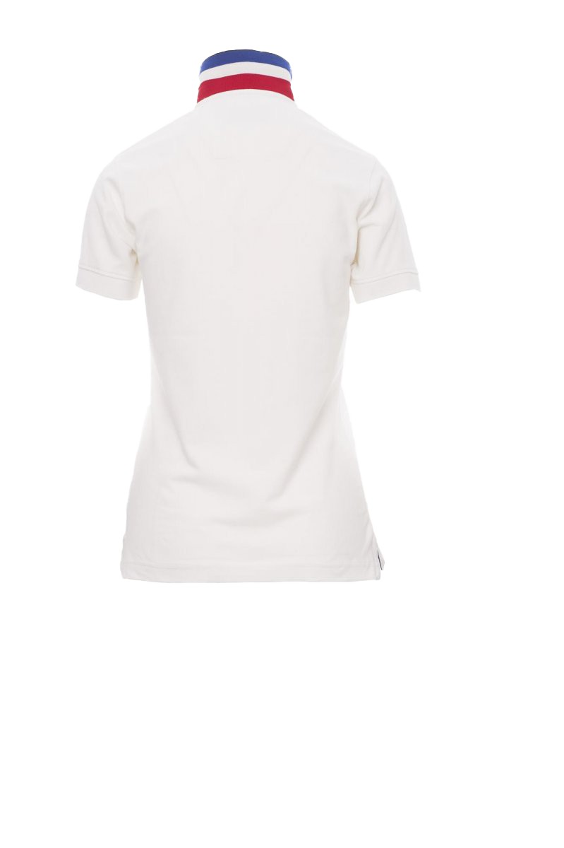 Polo femme, coupe cintrée, à manches courtes, 5 boutons teinte assortie effet nacré, col teinte assortie d'un côté et avec couleurs du drapeau contrastées de l'autre, visibles uniquement avec col remonté . Bas de manche droite avec insert fin couleurs drapeau en contraste, col et finition des manches en bord-côte, fentes latérales avec couleurs drapeau, coutures du col couvertes avec liseré en jersey dans couleurs drapeau, ruban de renfort latéral, ruban de renfort à l'intérieur du col.