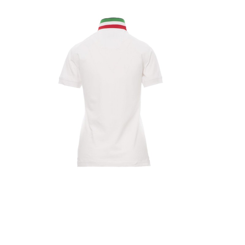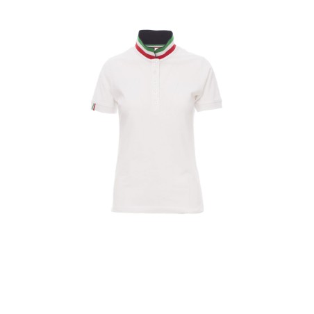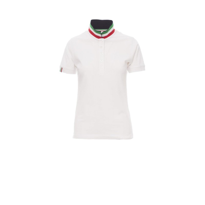 Polo femme, coupe cintrée, à manches courtes, 5 boutons teinte assortie effet nacré, col teinte assortie d'un côté et avec couleurs du drapeau contrastées de l'autre, visibles uniquement avec col remonté . Bas de manche droite avec insert fin couleurs drapeau en contraste, col et finition des manches en bord-côte, fentes latérales avec couleurs drapeau, coutures du col couvertes avec liseré en jersey dans couleurs drapeau, ruban de renfort latéral, ruban de renfort à l'intérieur du col.