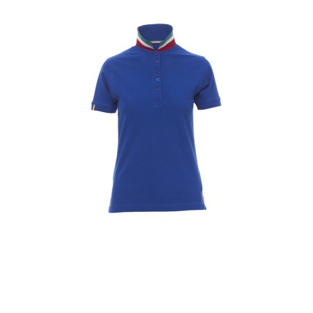 Polo femme, coupe cintrée, à manches courtes, 5 boutons teinte assortie effet nacré, col teinte assortie d'un côté et avec couleurs du drapeau contrastées de l'autre, visibles uniquement avec col remonté . Bas de manche droite avec insert fin couleurs drapeau en contraste, col et finition des manches en bord-côte, fentes latérales avec couleurs drapeau, coutures du col couvertes avec liseré en jersey dans couleurs drapeau, ruban de renfort latéral, ruban de renfort à l'intérieur du col.