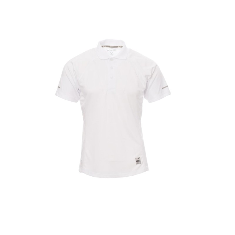 Polo homme technique-sportif, à manches courtes, à trois boutons assortis, manches raglan, double couture latérale gage de meilleure portabilité, bas profilé et plus long à l'arrière, insert réfléchissant sur manches et encolure arrière, ruban du col en contraste, étiquette transfert.