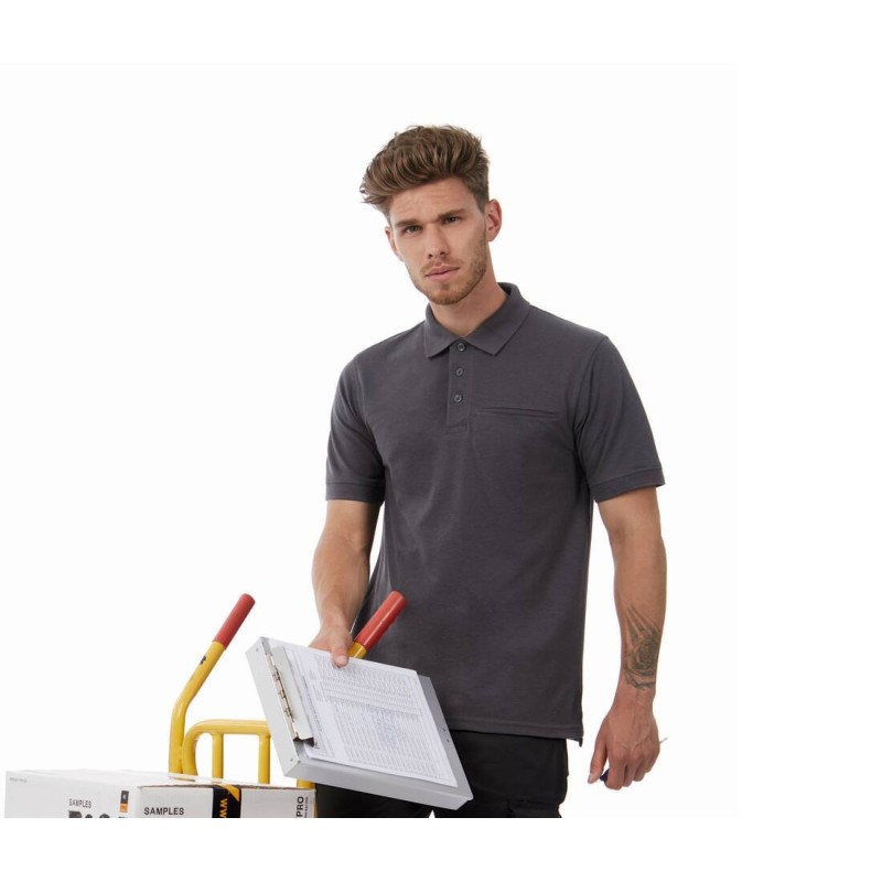 Maille piquée 65% polyester / 35% coton peigné pré-rétréci Ring-Spun. Manches montées. Poche poitrine pratique, invisible. Col et bas des manches tricot côte 1x1. Fermeture ton sur ton 3 boutons. Coutures latérales. Entretien facile, lavable à 60°C, convient au sèche linge.