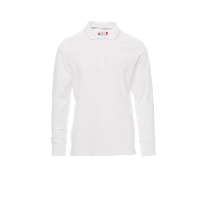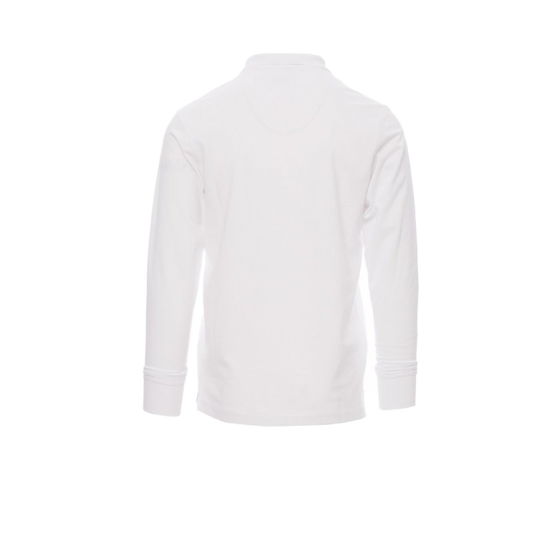 Polo pour homme à manches longues et 3 boutons assortis effet perlé, col et poignets en bord côtes, fentes latérales, coutures du col couvertes avec ruban en contraste, coutures stretch, ruban de renfort latéral, renfort profilé sur encolure arrière.