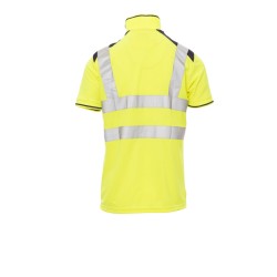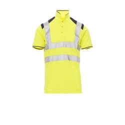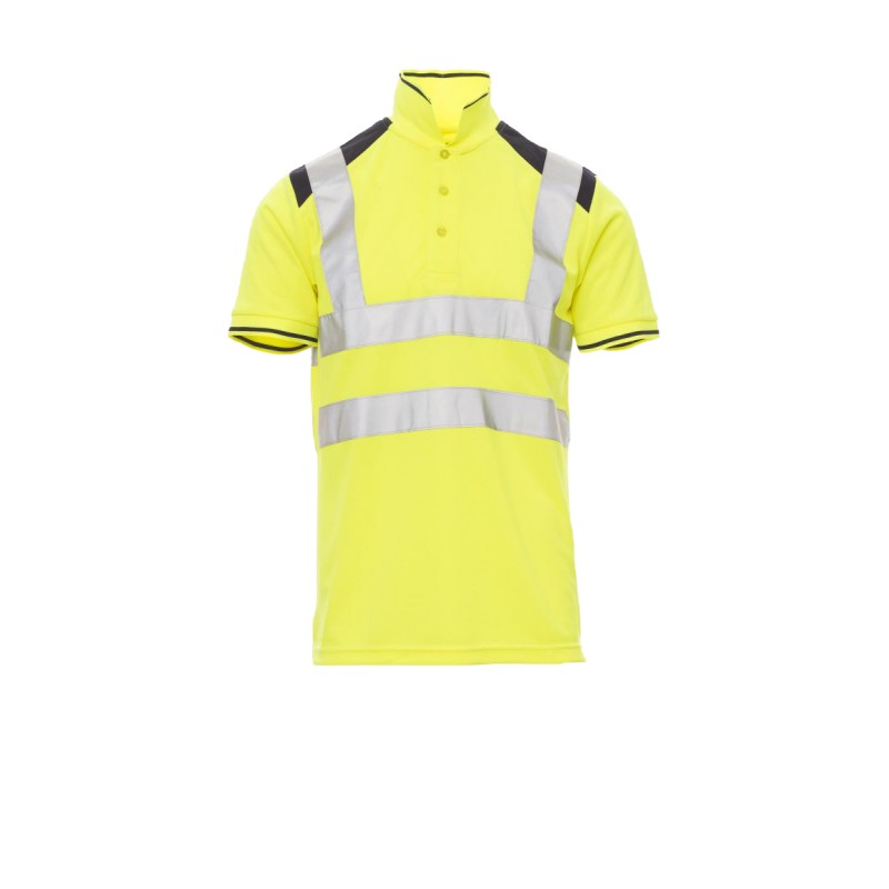 Polo bicolore pour homme à manches courtes haute visibilité avec bandes réfléchissantes, 3 boutons assortis effet perlé, col et bordure des manches en bord côtes avec fin profil en contraste, fentes latérales, coutures du col couvertes.