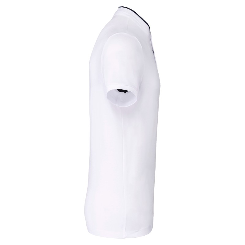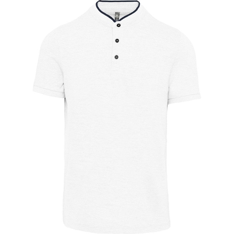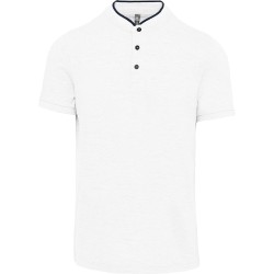 100% coton. (90% coton / 10% viscose pour coloris chiné). Maille piquée en coton peigné. Lavable à 60°C (40°C pour coloris chiné) Col style mao en bord-côte avec liseré contrasté. Patte de boutonnage 3 boutons contrastés. Bord-côte bas de manche. Finition double aiguille bas de vêtement.