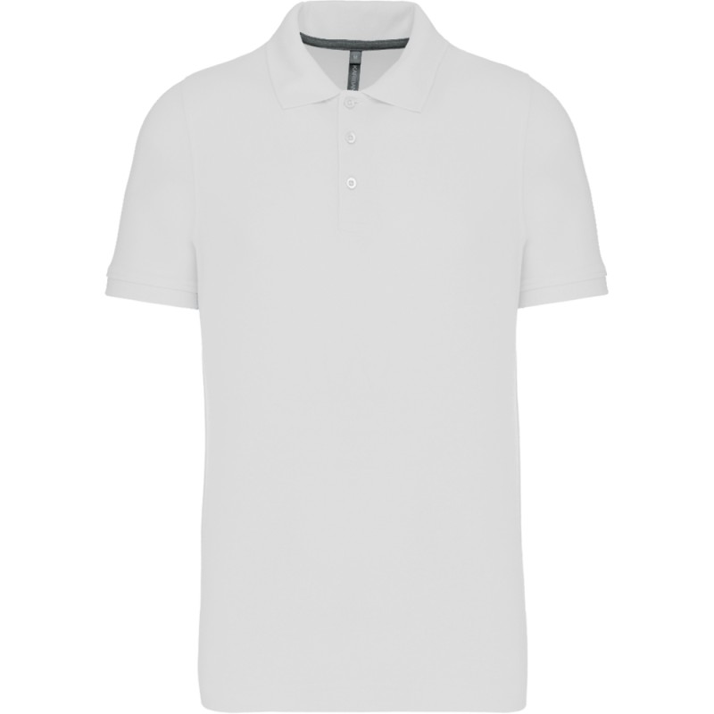 Coloris unis : 100% coton - lavable à 60°C. Coloris Oxford Grey : 90% coton/ 10% viscose - lavable à 40°C. Coton peigné maille piquée. Col en bord-côte. Bande de propreté encolure et fentes côté contrastée Dark Grey pour le polo Oxford Grey et Oxford Grey pour tous les autres coloris. Finition double aiguille bas de vêtement. Patte de boutonnage col 3 boutons. Bord-côte bas de manche.