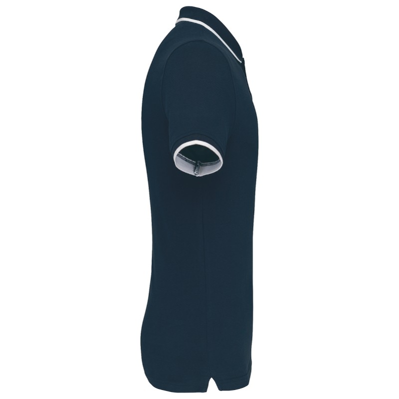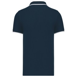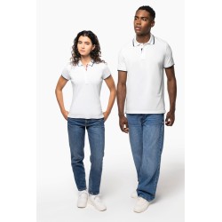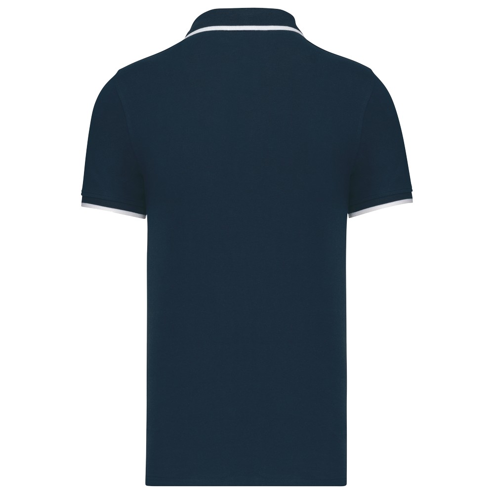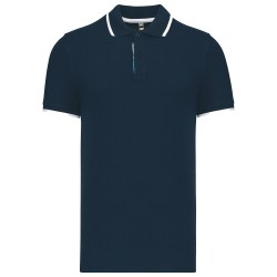 100% coton piqué. Col en bord-côte : liserés dessus et dessous de col contrastés (sauf White/ Navy : pas de contraste sous le col, seulement un liseré fin rouge sous la patte de boutonnage). Bande de propreté contrastée à l'encolure et aux fentes côtés. Patte de boutonnage col avec dessous fantaisie et 2 boutons. Bord-côte avec liseré contrasté au bas de manches. Finition double aiguille au bas du vêtement. Le col, renforcé à l'arrière, peut se porter relevé ou baissé.