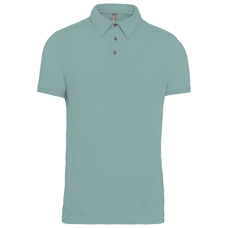 100% coton peigné. (French Navy Heather : 80% coton / 20% polyester - Grey Heather : 65% polyester / 35% coton - Oxford Grey : 90% coton / 10% viscose). Maille jersey. Col chemise. Patte de boutonnage col 3 boutons métal. Empiècement épaule. Finition bord-côte au bas de manches. Double aiguille bas de vêtement.