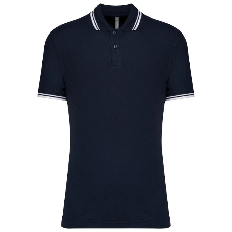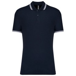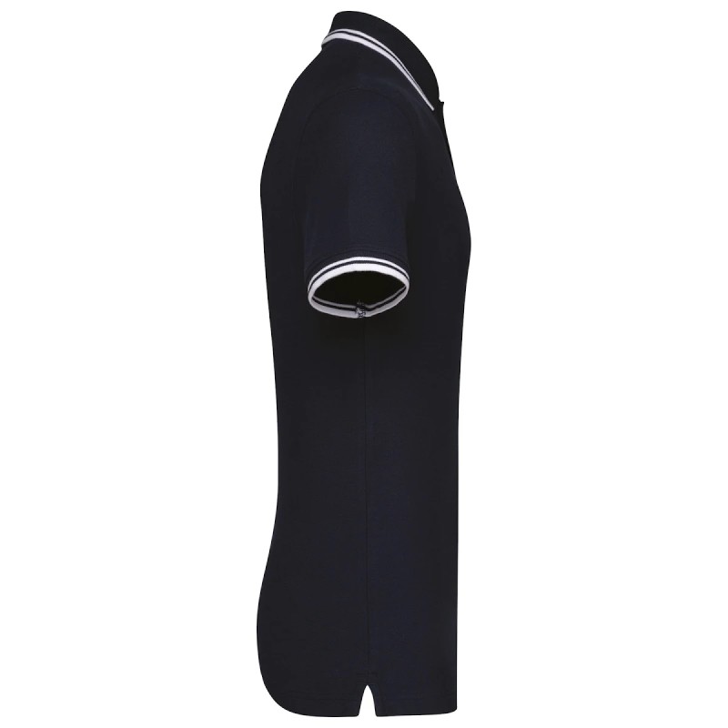 100% coton. Coloris chinés : 92% coton / 8% viscose. Coton peigné. Maille piquée. Coupe ajustée. Patte de boutonnage col 2 boutons ton sur ton. Bande de propreté tissu principal à l'encolure. Fentes côtés avec bande de finition du tissu principal. Finitions bord-côte avec liserés contrastés au col et bas de manches. Double aiguille bas de vêtement.