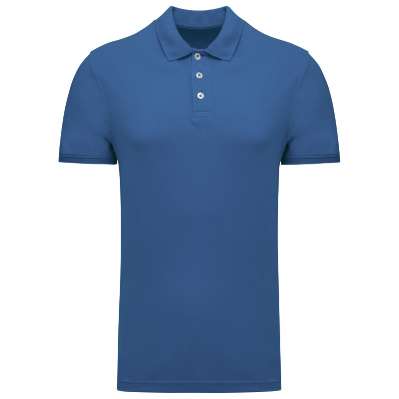 100% coton. Coton peigné. Maille piquée. Coupe ajustée. Coutures côtés. Fabriqué au Portugal. Col et finition bas de manche en bord côte 1x1. Patte de boutonnage à 3 boutons contrastés effet nacré sur toutes les couleurs. Bande de propreté en matière principale ton sur ton en finition intérieur de col. Renfort épaule. Fentes latérales. Finition double surpiqûres bas de vêtement. Pas d'étiquette de marque, uniquement une puce de taille déchirable pour faciliter la personnalisation.