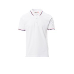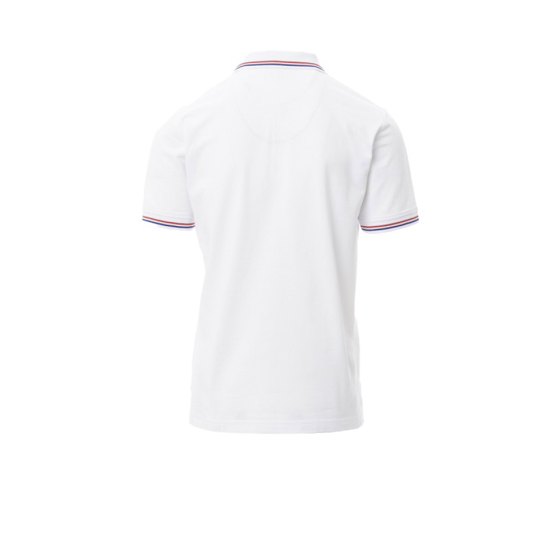 Polo unisexe à manche courte, 3 boutons blancs, col et bordure des manches avec profil tricolore fin en contraste, col et finition des manches en bord-côte, fentes latérales avec couture de renfort, couture du col couvertes, ruban de renfort latéral, coutures stretch, renfort profilé à l'intérieur du col.