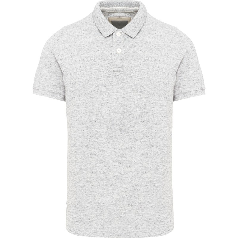 100% coton (Ash Heather : 98% coton / 2% viscose). Maille piquée aspect "Vintage". Col en bord-côte. Double bande de propreté en chevron à l'encolure et fentes côté. Patte de boutonnage 2 boutons contrastés. Finition double aiguille bas de vêtement et bord-côte au bas de manche. Ce produit a subi un traitement spécial et présente un aspect volontairement vieilli. Ce procédé de fabrication implique des variations de couleurs d'un produit à l'autre et rend chaque pièce unique. Pas d'étiquette de marque au col, uniquement une indication de taille pour faciliter la personnalisation.