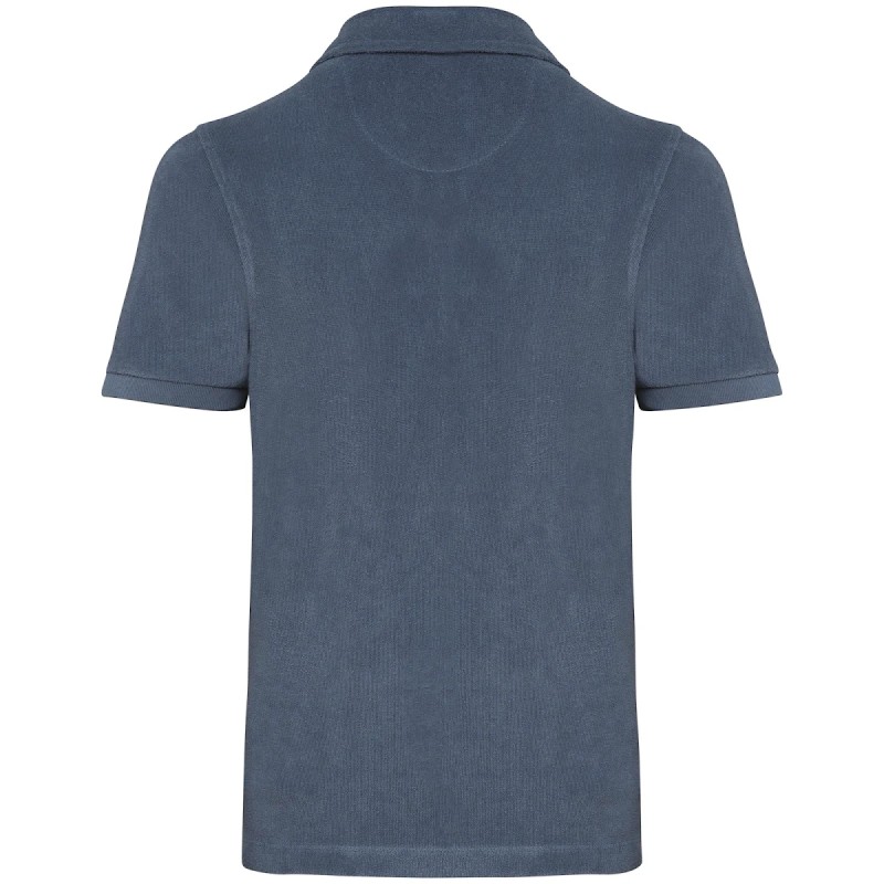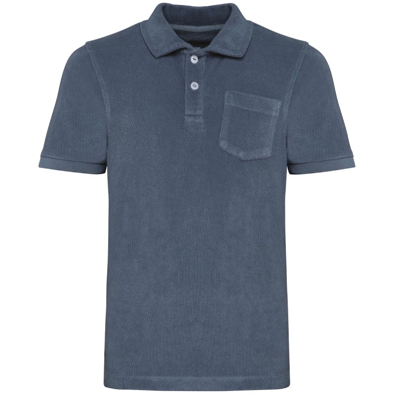 80% coton biologique / 20% polyester recyclé post-consumer. Fabriqué au Portugal. Coton peigné. Matière éponge. Coupe ajustée. Coutures latérales. Lavé aux enzymes. Poche plaquée poitrine. Demi-lune au dos. Col en matière principale. Manches courtes avec finition bas de manches en bord côte 1 x 1 et surpiqûre aux emmanchures. Patte de boutonnage avec 2 boutons en plastique blanc effet nacré. Renfort épaule en matière principale. Ourlet double surpiqûre bas de vêtement. Fentes latérales et encolure avec bande de propreté intérieure en chevrons ton sur ton.
