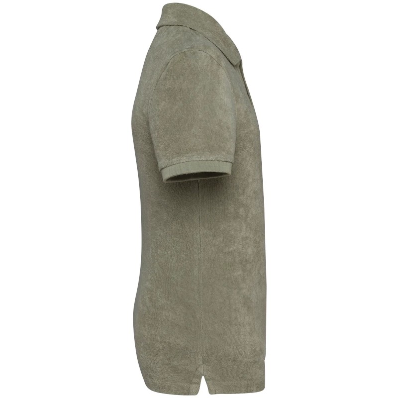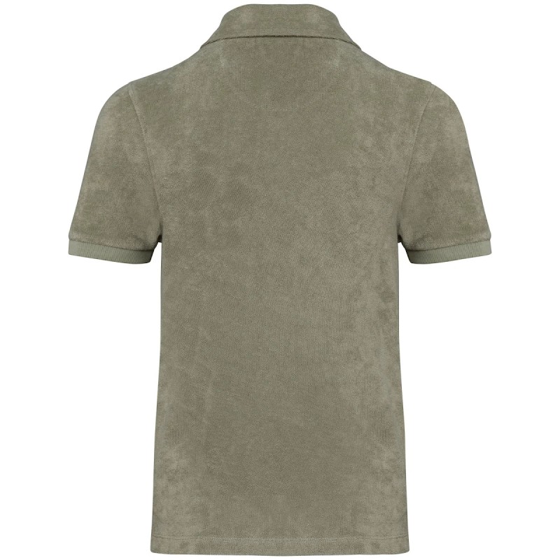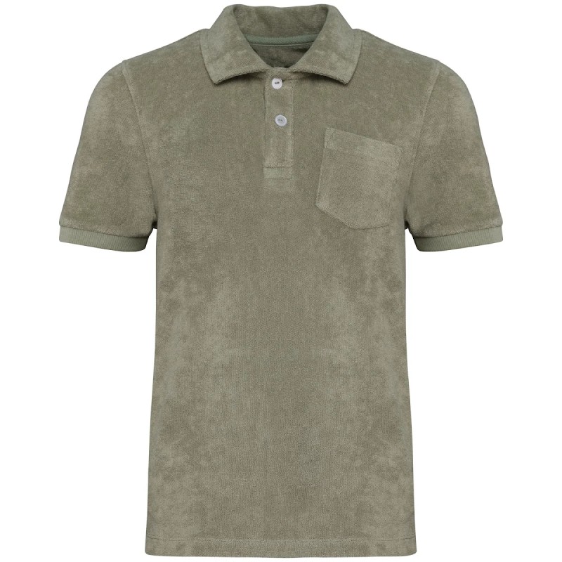 80% coton biologique / 20% polyester recyclé post-consumer. Fabriqué au Portugal. Coton peigné. Matière éponge. Coupe ajustée. Coutures latérales. Lavé aux enzymes. Poche plaquée poitrine. Demi-lune au dos. Col en matière principale. Manches courtes avec finition bas de manches en bord côte 1 x 1 et surpiqûre aux emmanchures. Patte de boutonnage avec 2 boutons en plastique blanc effet nacré. Renfort épaule en matière principale. Ourlet double surpiqûre bas de vêtement. Fentes latérales et encolure avec bande de propreté intérieure en chevrons ton sur ton.