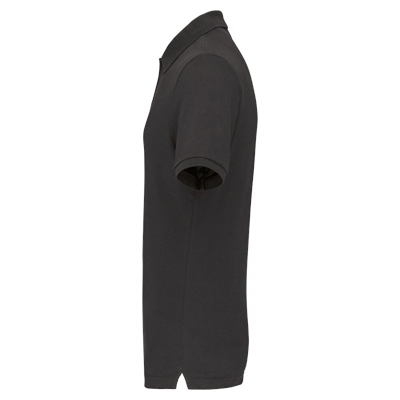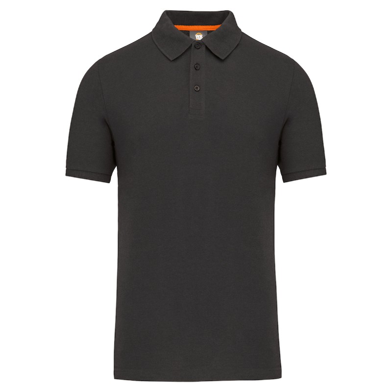 Coloris unis : 60% coton biologique / 40% polyester recyclé. Coloris Oxford Grey : 90% coton biologique / 10% viscose. Tissu maille piquée. Lavable à 60°C. Coupe droite. Col et bas de manches en bord-côte 1x1 avec bande de propreté chevron contrastée orange. Patte 3 boutons ton sur ton. 1ère boutonnière horizontale. Fentes latérales avec bande chevron contrastée orange. Finition double aiguille bas de vêtement. Etiquette de marque Tear Away pour faciliter la personnalisation. Couture renforcée aux épaules, pour une meilleure résistance.