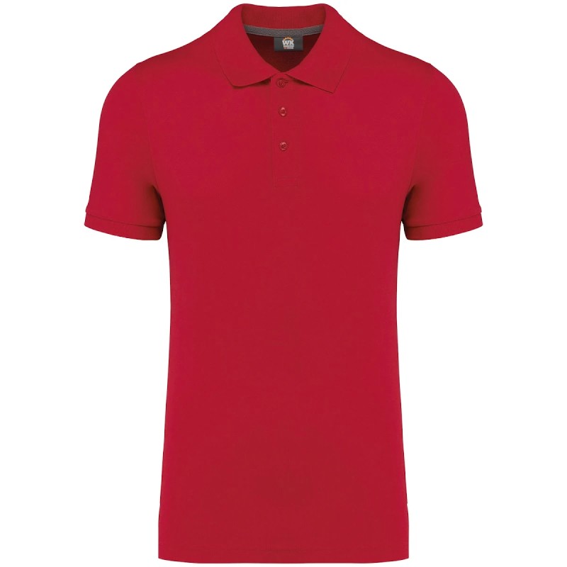 Coloris unis : 60% coton biologique / 40% polyester recyclé. Coloris Oxford Grey : 90% coton biologique / 10% viscose. Tissu maille piquée. Lavable à 60°C. Coupe droite. Col et bas de manches en bord-côte 1x1 avec bande de propreté chevron contrastée orange. Patte 3 boutons ton sur ton. 1ère boutonnière horizontale. Fentes latérales avec bande chevron contrastée orange. Finition double aiguille bas de vêtement. Etiquette de marque Tear Away pour faciliter la personnalisation. Couture renforcée aux épaules, pour une meilleure résistance.