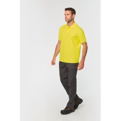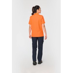 60% coton / 40% polyester recyclé. Coton peigné. Maille piquée interlock. Coupe confort. Lavage industriel et/ou lavage domestique 60°C. Séchage tunnel. Col et bas de manches en bord-côte 1x1. Bande de propreté intérieur col. Fermeture col par 2 boutons pression cachés sous patte. Renforts intérieurs épaules en tissu sergé 65% polyester / 35% coton pour éviter la déformation lors du lavage industriel et séchage tunnel. Pochette RFID au bas du vêtement sous label. Finition double aiguille bas de vêtement. EPI Classe II - Normes NF EN ISO 13688:2013 + NF EN ISO 13688/A1:2021 (Vêtements de protection - Exigences générales), NF EN 17353:2020 : Type A (Habillement de protection - Équipement de visualisation améliorée pour des situations à risque modéré - Méthodes d’essai et exigences), NF EN ISO 15797:2018 (Textiles - Méthodes de blanchissage et de finition industriels pour les essais des vêtements de travail) : Blanchissage industriel professionnel - Méthode de lavage programme 8 avec finition en tunnel uniquement. Etiquette de marque tissée.