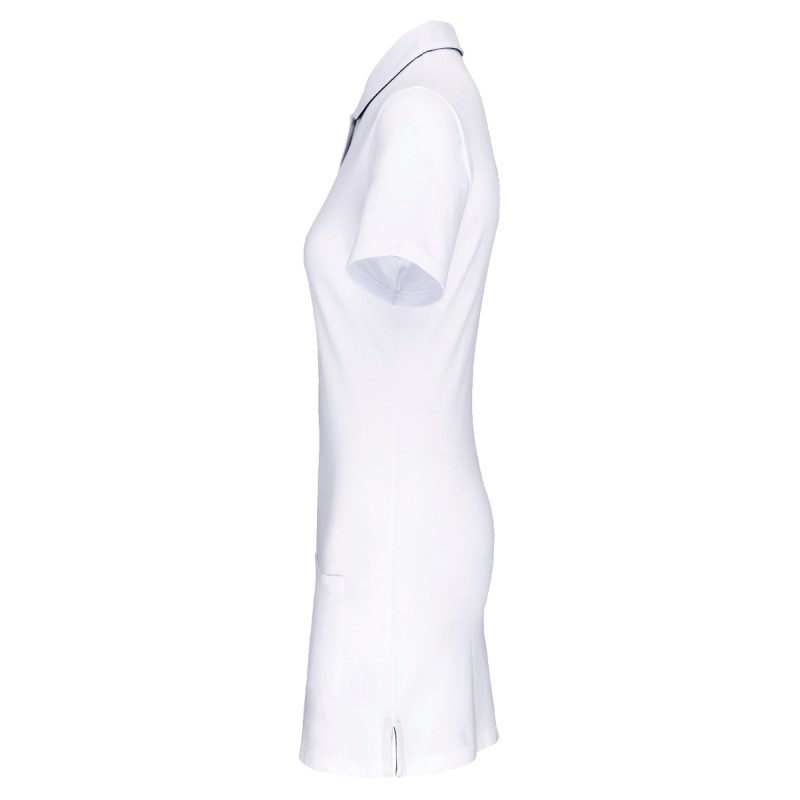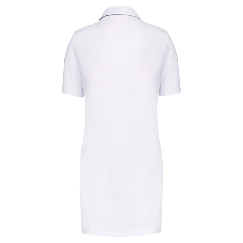 Coloris unis : 95% coton / 5% élasthanne. Coloris Oxford Grey : 85% coton / 12% viscose / 3% élasthanne. Tissu maille piquée. Coupe droite. Lavable à 60°C. Col en maille piquée. Intérieur patte et dessous de col contrasté avec 3 boutons métal (1ère boutonnière horizontale). Bande de propreté contrastée intérieur col. 2 poches plaquées au bas du vêtement devant. 2 fentes côtés contrastées pour plus d'aisance. Piqûre de renfort angle de poches. Finition ourlet bas de manche et bas de corps tubulaire. Etiquette de marque Tear Away pour faciliter la personnalisation.