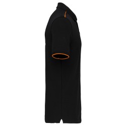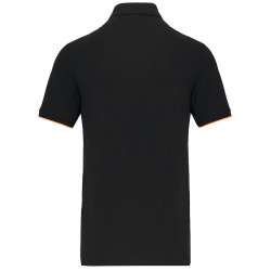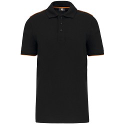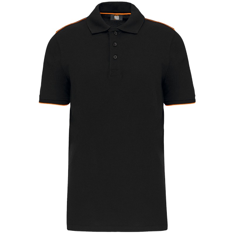 65% polyester / 35% coton. Coton peigné. Maille piquée. Lavable à 60°C. Traitement antiboulochage. Patte 3 boutons avec bande intérieure contrastée. Col en bord-côte avec bande de propreté. Passepoil contrasté intérieur col et épaules. Finitions bord-côte avec liseré contrasté au bas de manches. Fentes latérales avec bande chevron contrastée pour plus de confort. Finition double aiguille au bas de vêtement. Idéal pour une utilisation quotidienne.