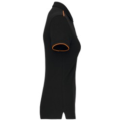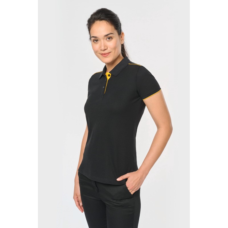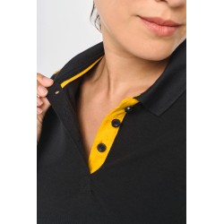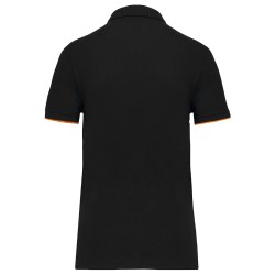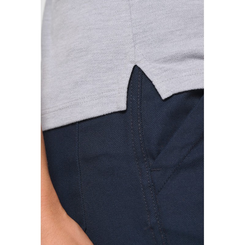 65% polyester / 35% coton. Coton peigné maille piquée. Lavable à 60°C. Traitement antiboulochage. Patte 3 boutons avec bande intérieure contrastée. Col en bord-côte avec bande de propreté. Passepoil contrasté intérieur col et épaules. Finitions bord-côte avec liseré contrasté au bas de manches. Fentes latérales avec bande chevron contrastée pour plus de confort. Finition double aiguille au bas de vêtement. Idéal pour une utilisation quotidienne.