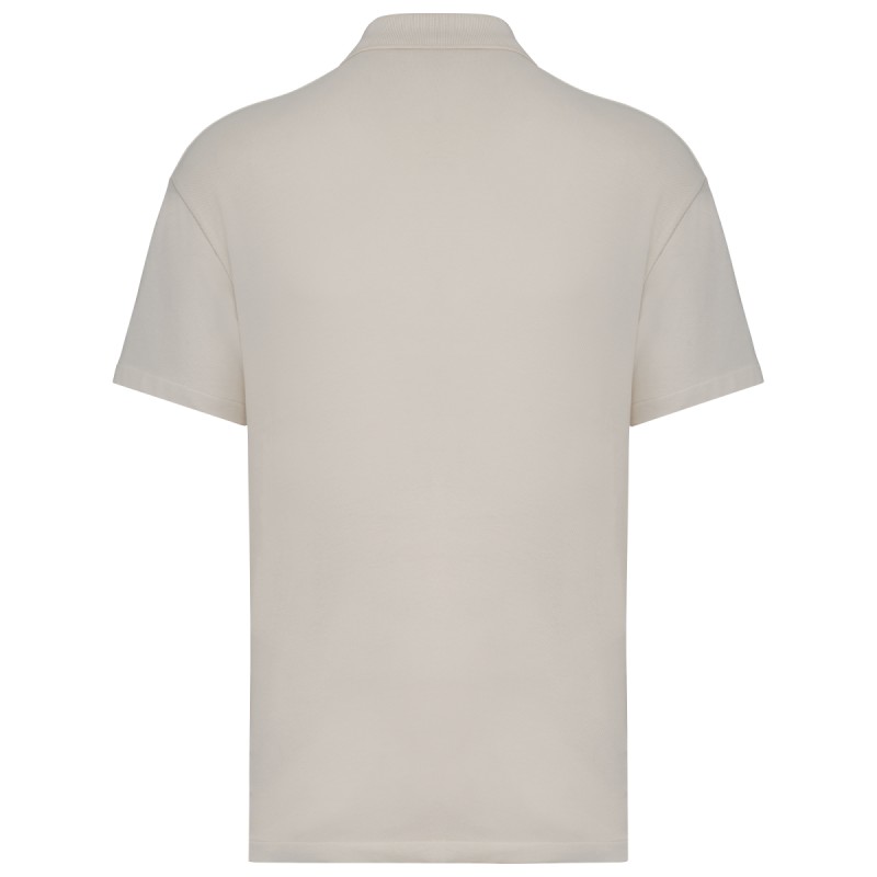 100% coton biologique. Coton peigné. Maille piquée. Coupe droite à épaules tombantes. Lavé aux enzymes. Bord côte col 1 x 1. Patte de boutonnage rapportée à 2 boutons en plastique recyclé ton sur ton. Bande de propreté en matière principale ton sur ton en finition intérieur de col. Renfort épaule. Finition simple surpiqûre bas de manches et de vêtement.