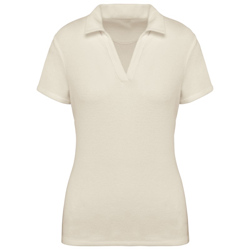 80% coton biologique / 20% polyester recyclé post-consumer. Fabriqué au Portugal. Coton peigné. Tissu éponge. Lavé aux enzymes. Coupe ajustée. Col et patte polo en V sans bouton en matière principale. Renfort épaules. Finition bas de manches et de vêtement double surpiqûre. Demi-lune au dos.
