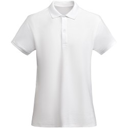 Polo ajusté à manches courtes pour femme en coton organique. Col et bord des manches en côte 1x1. Patte à 2 boutons. Coutures recouvertes renforcées au col. Fentes latérales sur l'ourlet. Étiquette détachable. Le mannequin mesure 174 cm et porte la taille S.