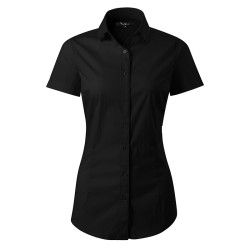 Chemise Femme Gamme Flash Manches courtes Col court et souple Fermeture boutonnée ton sur ton Double empiècement avec 2 pinces au dos et à l'avant Coupe cintrée Bas arrondi 73% coton 26% polyamide 3% élasthanne 110 gr/m²